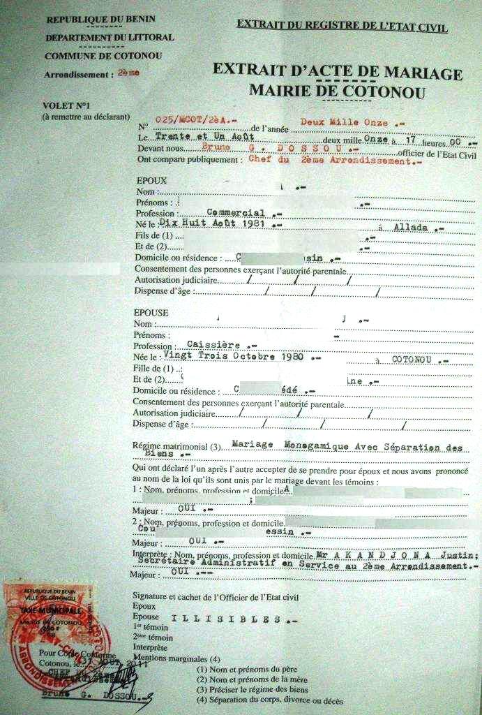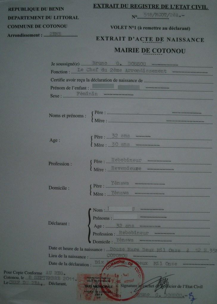 document type Copie certifiée conforme de l'extrait d'acte de naissance