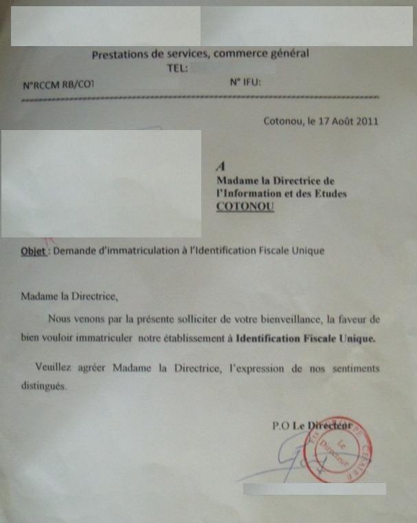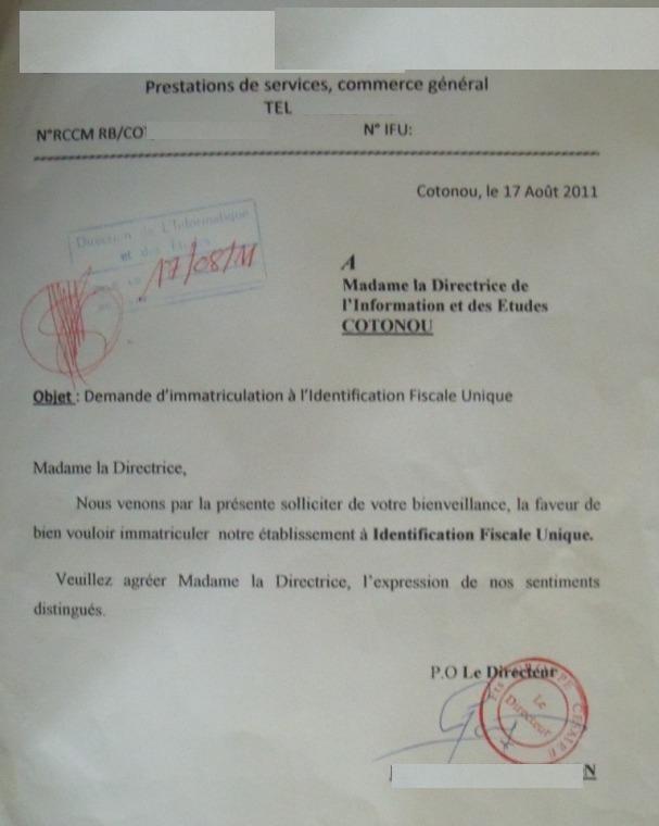 document type Demande d'immatriculation (décharge IFU)